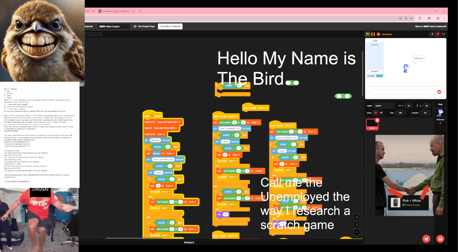 Today I made a Save Code Generator for Super Mike World 2. When I finished coding it, Max took this screenshot of my virtual camera after I was finished.