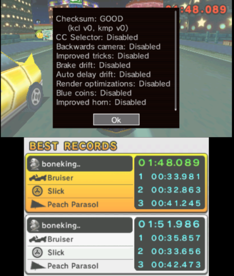 i got my first wr yesterday after a guy showed me (and i showed the rest of the ctgp time trials community) about a new glitch on mushroom city. this record lasted an hour lol.