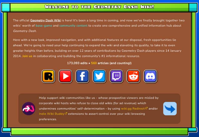 there's finally an official geometry dash wiki after 12 years of the game's existence! meaning that the dreaded unofficial fandom slop is now obsolete