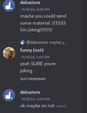 this screenshot is after she had manipulated me into trusting her. this is after she said she wanted me to send her "material"