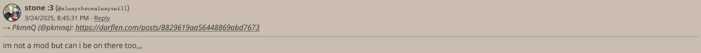 i am also not involved, in fact i haven’t opened darflen in weeks and i only opened it bc someone sent this in a discord server